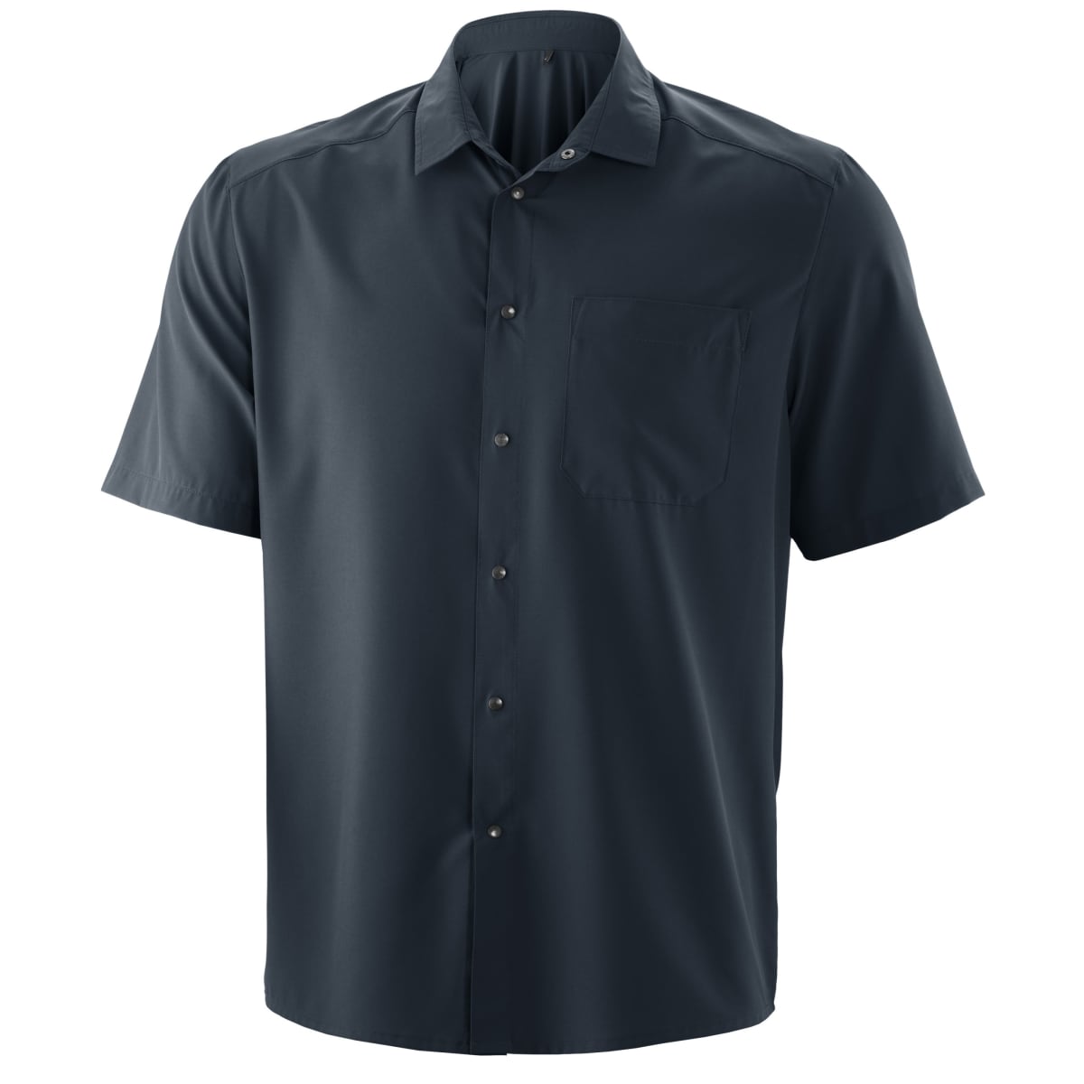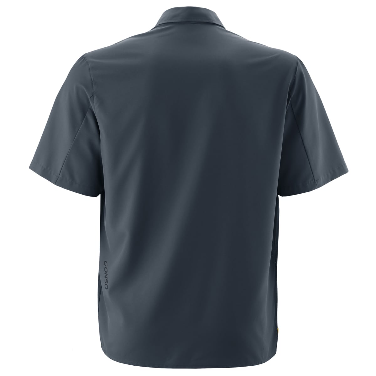 From gravel to trekking to mountain biking, the ADVENTURE SHIRT M short-sleeved button-up shirt from GONSO looks great everywhere in terms of style and function. The loose-fitting short-sleeved shirt is comfortable to wear, offers good ventilation, dries quickly, is robust – and stylish. It can be put on and taken off quickly thanks to the button placket with press studs. There is also a chest pocket and a concealed back pocket with zip. Details: