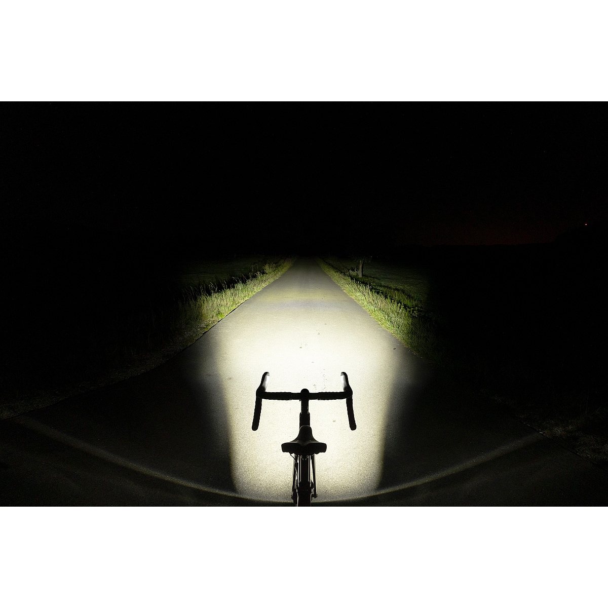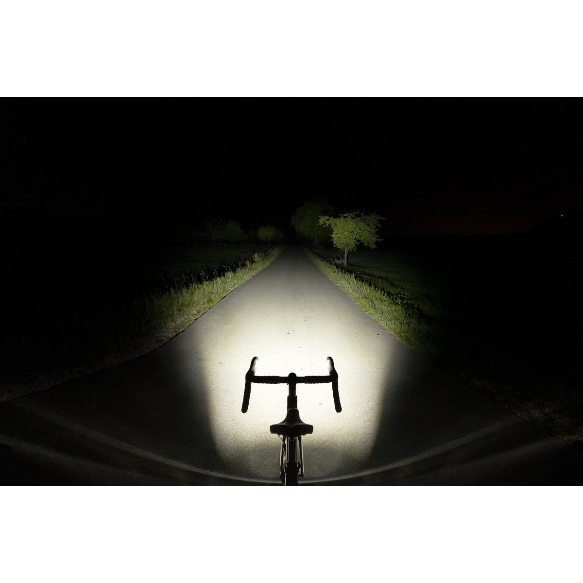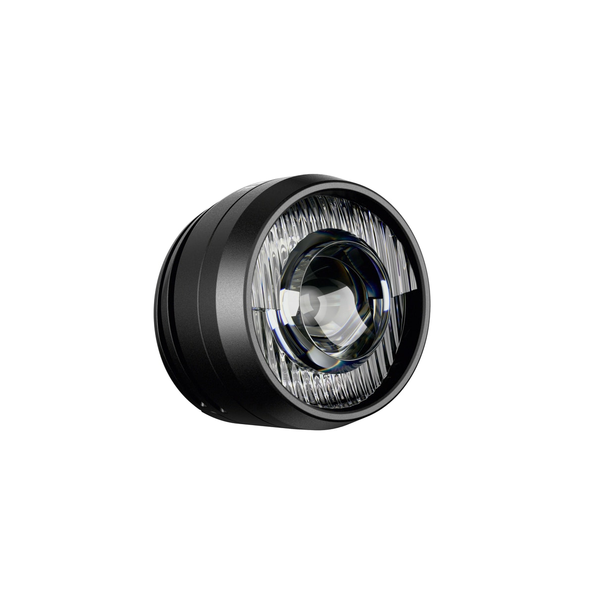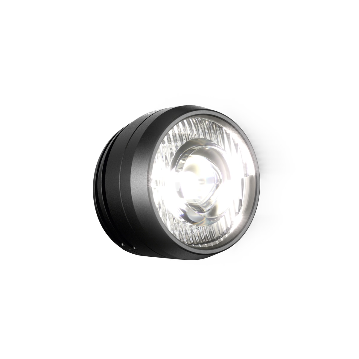 This is made possible by a high-precision, specially developed lens technology that ensures a homogeneous light distribution that is unrivalled in this size class. In addition to the 700 lux low beam, the front light has a switchable high beam that can be operated using the wireless Bluetooth handlebar switch. When activated, it provides up to 1200 lumens. This is bright enough to see far ahead even on dark country roads and fast descents. But the bike light can also prove useful during the day: Daytime running lights can be activated if needed to increase your visibility in road traffic.