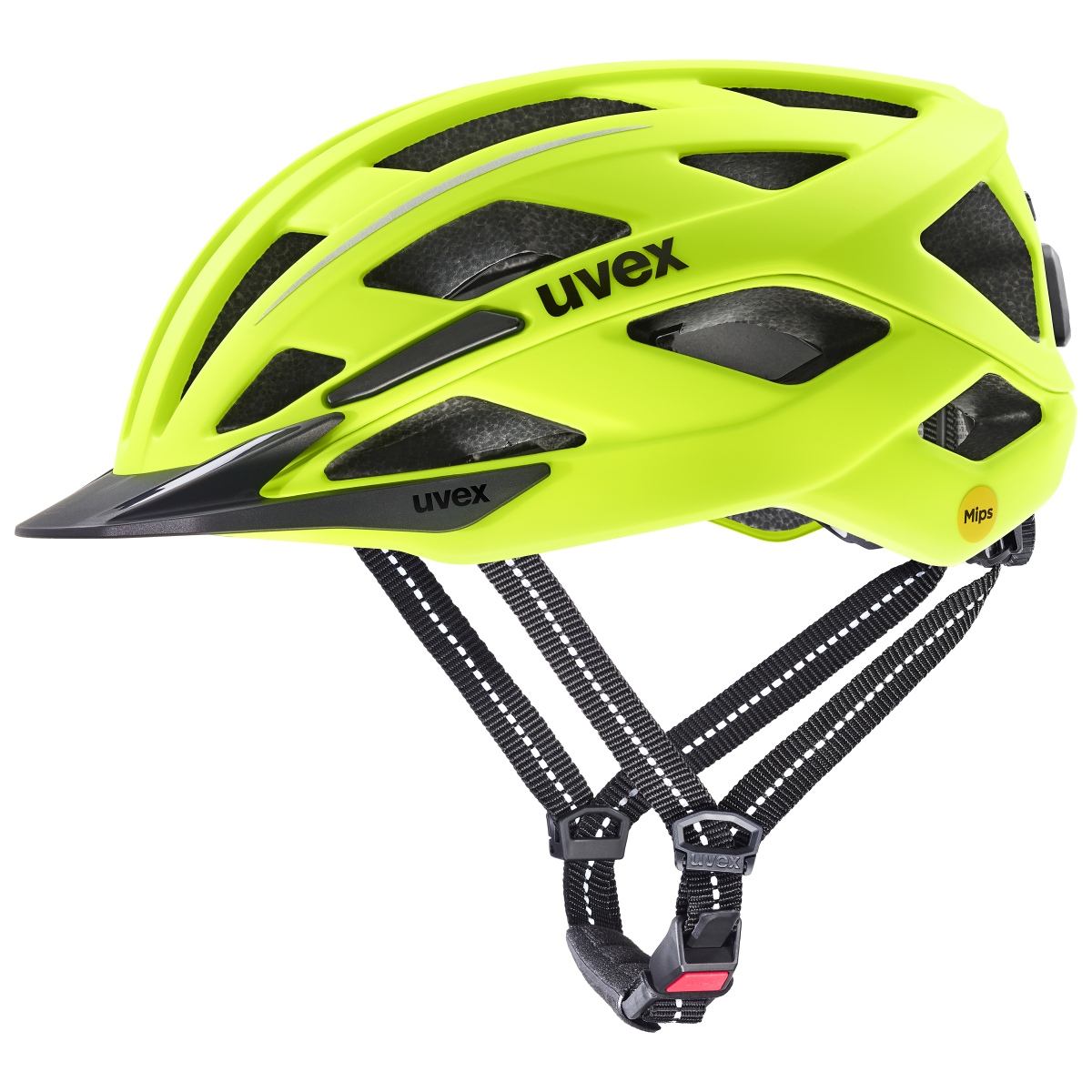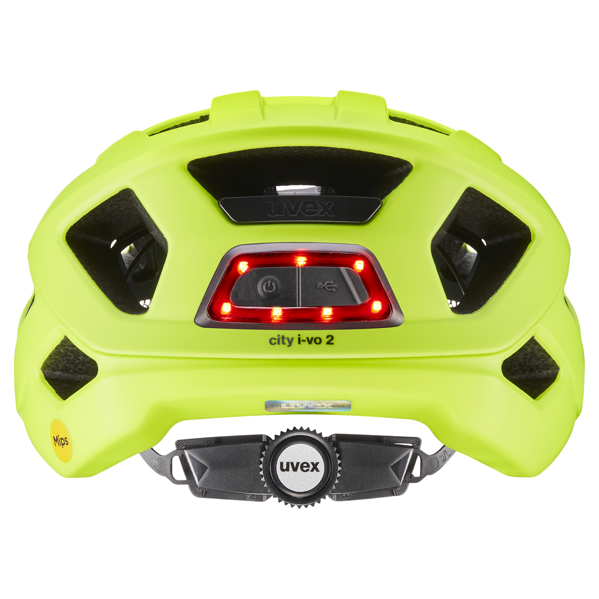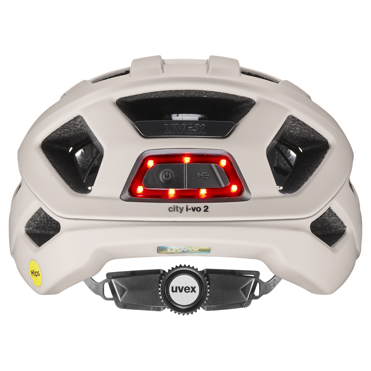 Visible. Safe. Carefree. In everyday road traffic, good intentions are often not enough to be well protected when travelling. The CITY I-VO 2 MIPS bike helmet from uvex has everything you need on your way to work, the shops or the lake: Reliable protection, high comfort and visibility. DOUBLE-INMOULD technology combines shock-absorbing, recycled EPS hard foam with overlapping, seamlessly connected polycarbonate helmet shells – for a stable yet lightweight construction. The protection is complemented by the integrated MIPS safety system, which provides additional protection in the event of an angled impact. Comfortable extra: The 3D IAS system precisely adjusts the height and width of the helmet to any head shape. Removable, washable inner pads made from recycled material provide additional comfort, while 25 vents with fly screens ensure fresh air even on warm days. An integrated visor protects against sun and rain without restricting the field of vision. The practical MONOMATIC fastener completes the comfort package. And when it gets late? No problem. Reflective design elements and, of course, the rechargeable plug-in LED rear light ensure better visibility. Whether in the city centre or out in the countryside, the uvex city i-vo 2 MIPS bike helmet is with you.